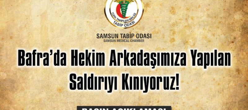 Bafra'da görev yapan bir aile hekimine çocuğuna ilaç yazmadığı için demir sopayla saldırıya Samsun tabip Odasından kınama geldi.