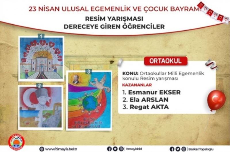 19 Mayıs Belediyesi, 23 Nisan Ulusal Egemenlik ve Çocuk Bayramı dolayısıyla ilkokul öğrencilerine yönelik ‘’ Arif Nihat Asya’nın ‘’BAYRAK’’ şiirini güzel okuma yarışması, ortaokul öğrencilerine yönelik ise ‘’MİLLİ EGEMENLİK’’ konulu resim yarışması düzenledi.