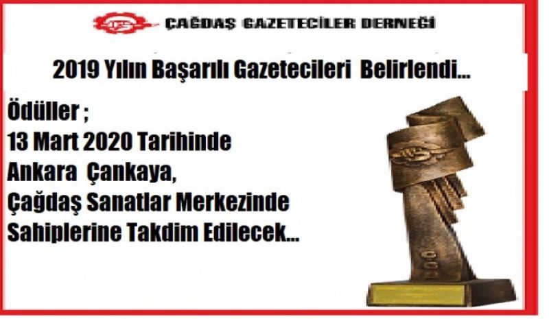 ÇGD (Çağdaş gazeteciler Derneğinin) geleneksel olarak her yıl düzenlediği yılın başarılı gazetecilik ödülleri 2019 yılı yarışması sonucu ödül alan meslektaşlarımız belli oldular.