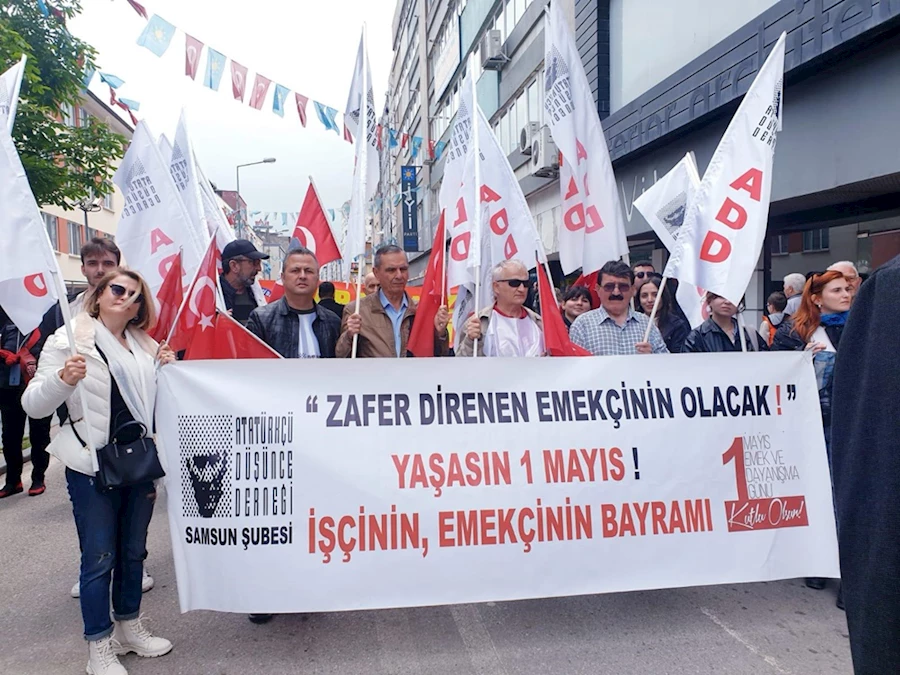 Atatürkçü Düşünce Derneği Samsun, Bafra, Çarşamba, Terme, Havza Şube Başkan ve yöneticileri Samsun şube binasında ortak açıklama yaptıktan sonra hep birlikte 1 Mayıs İşçi Bayramı yürüyüş kortejine katıldılar. Tüm şubeler adına açıklamayı Samsun Şube Başkanı Sayın Birol Yelekin, şöyle dedi.