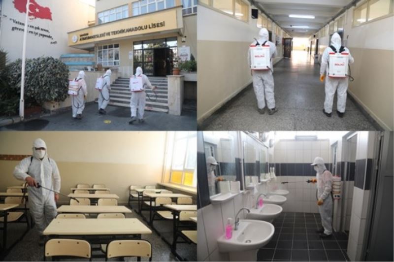 Atakum Belediyesi’nin hijyen timlerinden mesleki ve teknik liselere dezenfeksiyon
