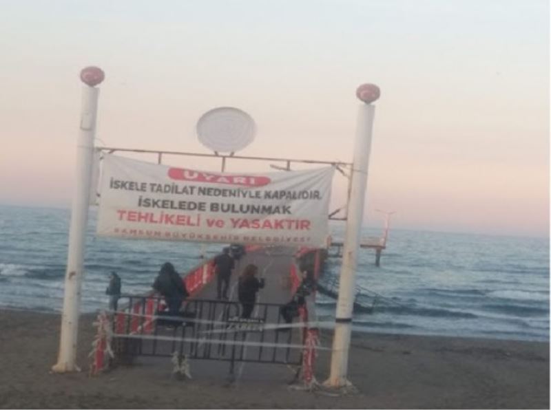 Atakum Belediyesi tarafından yıkılan Yalı Kafe karşısında bulunan Büyükşehir Belediyesi tarfından kullanıma açılmak üzere tadilata soktuğu ve girişinde 'Uyarı İskele Tadilat Nedeniyle Kapalıdır! İskelede Bulunmak Tehlikeli ve Yas