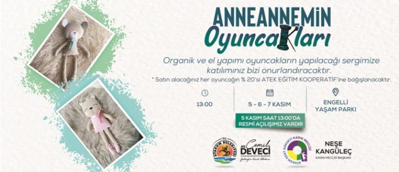 SAMSUN- Atakum Kent Konseyi Kadın Meclisi olarak en kıymetlilerimiz çocuklarımızın sağlığını en az sizler kadar önemsiyoruz. Bu sebepten dolayı tamamen el yapımı kendi imkanlarımızla hazırlamış olduğumuz 50 farklı yaklaşık 155 adet ten oluşan “doğal oyuncak sergimizi” sizlerin beğenilerine sunuyoruz. Oyuncaklarımız beğenildiği ve sipariş aldığı takdirde ev kadınlarından istihdam edeceğimiz bir grup kadınımızla Atakum belediyesinin bize sunacağı bir atölye ortamında üretime başlayacaktır. Üretilen oyuncaklardan elde edilecek gelir ATEK tarafından sosyal sorumluluk projelerinde kullanılacaktır. Atakum eğitim kooperatifimiz, kasasına girecek olan her kuruşu çocuklarımızın eğitimleri için harcayacaktır. Satışa sunularak elde edilen gelirle ilk etapta Atakum’a bir oyuncak müzesi ve bir çocuk kütüphanesi açılması planlarımız arasındadır.