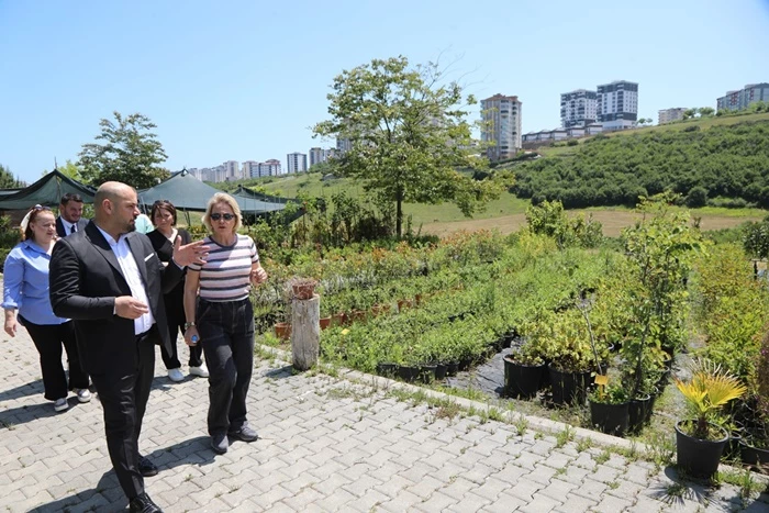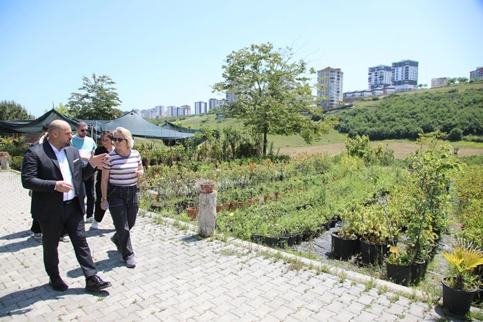 Atakum Belediyesi Park ve Bahçeler Müdürlüğü Sera Alanı, belediye ekiplerinin yetiştirdiği çeşitli sebze ve meyvelerin yanı sıra farklı türdeki ağaçlarıyla dikkat çekiyor.