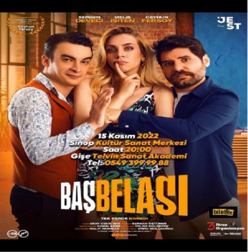 3 Three Organizasyonun organize ettiği ve Sinoplu izleyicilerle buluşturmak için Eray Yasin Işık’ın yazdığı, Serkan Üstüner’in yönettiği BAŞ BELASI’nı başarılı oyuncular, Ceyhun Fersoy, Melis İşiten ve Sergen Deveci'nin seyirciyi kahkahaya boğduğu tiyatro oyunu Sinop Kültür Merkezinde izleyicisiyle buluşuyor.