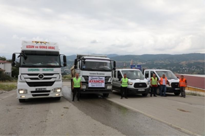 Sel felaketinin yaşandığı Batı Karedeniz bölgesine AFAD'ın belirlediği ihtiyaç doğrultusunda Samsun Valiliği koordinesinde 1 yükleyici TIR ile 3 Case’in yanında İlkadım Belediye Başkanı Necattin Demirtaş’da 1 kamyon içme suyu afet