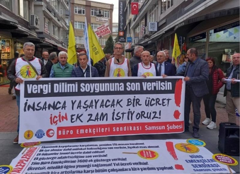 Büro Emekçileri Sendikasının Samsun Şube Sekreteri Şeref Vergi Adaleti nedeniyle yaptığı basın açıklamasında şunları ifade etti. “