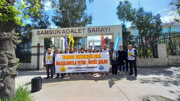 Büro Emekçileri Sendikasının Samsun şubesinin kadın sekreteri Emine Boyraz, Samsun Adalet Sarayı önünde yaptığı konuşmasında; “2014 yılından itibaren her gelen Adalet Bakanı personelin özlük haklarının iyileştirilmesine yönelik ağzımıza bir parmak bal çalmış, ancak bu söylemler somut bir zemine yayılmayıp soyut olarak günümüze kadar gelmiştir” dedi.