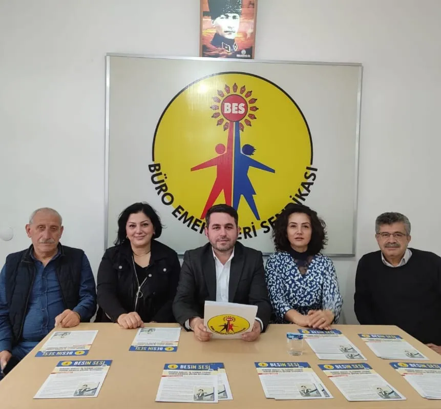 Sendika binasında basın açıklamasını sürdüren BES mali sekreteri Özmen şunları söyledi.