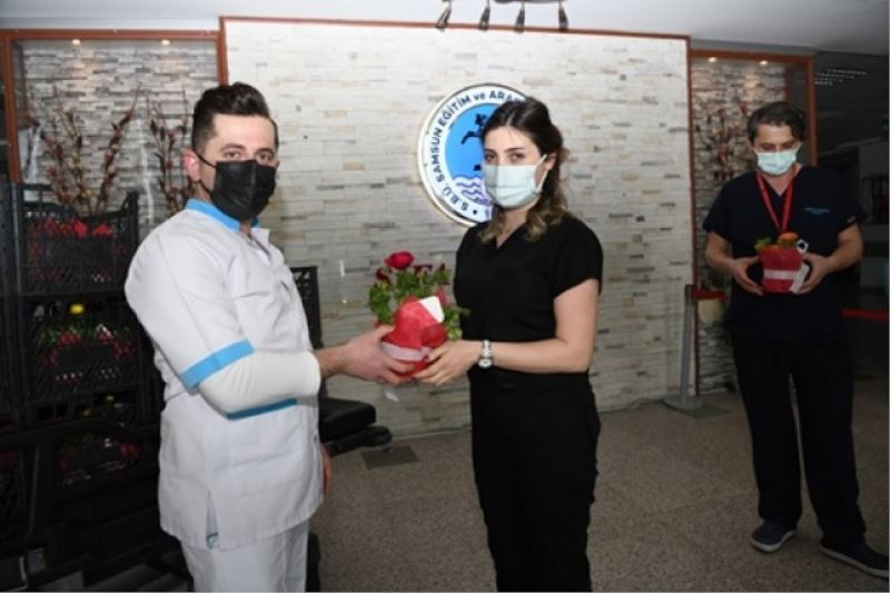 Samsun Büyükşehir Belediyesi, '14 Mart Tıp Bayramı' nedeniyle sağlık çalışanlarına çiçek takdim ederek günlerini kutladı.