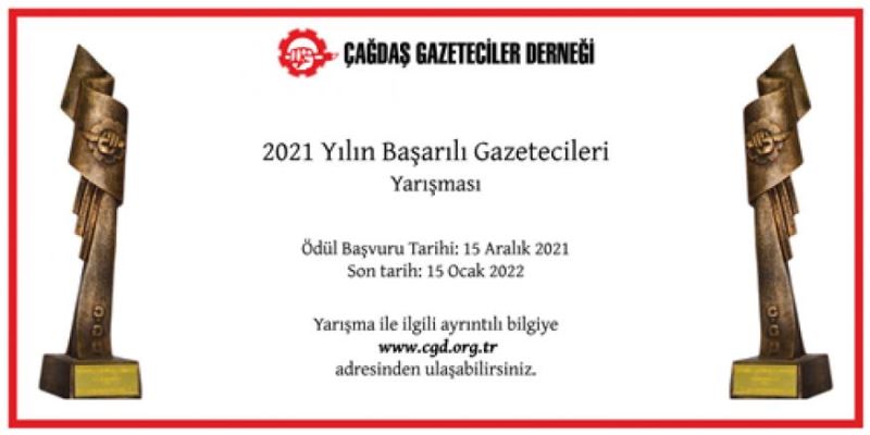 Çağdaş Gazeteciler Derneğinin geleneksel “Yılın Başarılı Gazetecileri” yarışmasına başvurular başladı. Yarışmaya katılacakların, 2021 yılına ilişkin ürünlerini, en geç 15 Ocak 2022 cumartesi günü akşamına kadar Çağdaş G