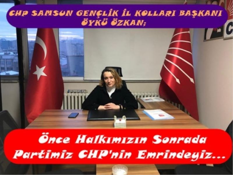 CHP Samsun İl Gençlik Kolları başkanı Furkan Demir’in vefatı nedeniyle CHP Genel Merkezi tarafından CHP Samsun İl Gençlik Kolları Başkanlığına atamayla gelen Öykü Özkan, 'Partinin gençlik kollarında olsun diğer çalışma alanlarınd