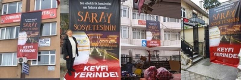 Cumhuriyet Halk Partisi Samsun İl Örgütü 17 İlçe Başkanlığı’na NE ELEKTRİK KESİNTİSİ NE FATURA DERDİ… SARAY SOSYETESİNİN KEYFİ YERİNDE pankartları astı.