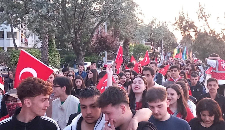 “Atatürk'ü anma gençlik ve sefer bayramımızın 106. yılı Atatürk'ün İlkadım’a ayak basışının Kurtuluş Savaşı'nın başlatma Kurtuluş Savaşı'nı başlatmasının 106. yılını kutluyorum. Bugün bizler burada bu heyecanı yaşıyorken şu anda İzmir Gündoğdu Meydanı inim inim inliyor, yıkılıyor, birileri de saraylarında tir tir titriyor. Bu titremenin asıl sahibi sizlersiniz. 19 Mart'tan başlayan 23 Mart'ta zirveye çıkan motivasyonunuzla, heyecanınızla, eylemselliğinizle bütün kitleyi, anneleri, babaları, partileri arkanızdan sürüklediniz. Saraçhane’yi teslim etmediniz. Bütün Türkiye adına burada sizlerin nezdinde hepinizi kutluyorum. Hepinizi alnından öpüyorum. Atatürk bu bayramı size emanet ederken yüzyıl sonra gelecek tehlikeyi gördüğü gibi sizlerdeki cesareti, sizlerdeki inancı gördü. Siz bu bayramı sonuna kadar hak ediyorsunuz. Ama şimdi Esas bayram genel başkanımızın başkanlığında, liderliğinde verdiğimiz mücadeleyi zirveye taşıyacağız. Adayımızı yanımıza alacağız. Sandığımızı önümüze koyacağız. Bütün mücadelemiz bundan sonra onun için olacak. Bugün Samsun'da başlatılan 13 Nisan'da başlatılan demokrasi mitingi millet iradesine sahip çıkıyor mitinginin final mitingi şu anda İzmir'de yapılıyor. Dokuz Eylül'de düşmanın denize döküldüğü yerde şu anda milyonlar bugünü konuşuyor, bu miting için bir araya geldi. Bizler de burada hem oraya bir motivasyon gönderiyoruz geçen yıl olduğu gibi hem de bu coşkuyu ilk adımın atıldığı bu şehirde, bu topraklarda sonuna kadar kutlayacağız. Gençlik kollarımıza, kadın kollarımıza, il başkanlığımıza, il örgütümüze bu emeğe katkı sunan herkese sonsuz teşekkür ediyorum. Tekrar onları kutluyorum. Hepinize iyi akşamlar.”