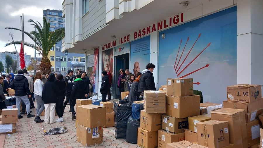 Samsun CHP il örgütü ve 17 ilçe örgütü bir araya gelerek, depremzedelere iletilmek üzere bir tır kiralayarak Malatya’ya gönderilmek üzere CHP Atakum ilçe başkanlığı önünde yüklenen tır doldurulduktan sonra geriye kalan kolileri de Atakum belediyesinin kaldıracağı tırlara yüklenmek üzere belediye binası önüne gönderildi. CHP il ve ilçe örgütleri tarafından yüklenen tardım kolileri CHP genel başkan yardımcısı Malatya milletvekili Veli Ağbaba’ya teslim edileceği partili yetkililer tarafından bildirildi. Tırı yükleyen gençler ve kadınlara dinlenmeleri esnasında Samsun simidi ikram edildi.