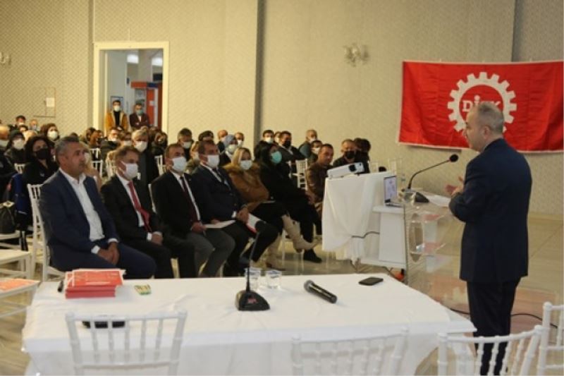 DİSK Genel İş Sendikasi Samsun Şubesi Atakum Belediyesi personeline yönelik işyeri egitim semineri gerçekleştirdi. Başkan Deveci belediye çalışanlarına yaptığı konuşmada, ‘’Hak mücadelesinde kardeşçe yüreklice yan yana olmanızı