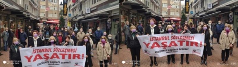 Dr. Işık Özkefeli açıklamasının sonunda şunları kaydetti. “Devlet, Türkiye Cumhuriyeti tarihinde ilk kez insan hakları temelli kadına yönelik her türlü şiddetin önlenmesine dair uluslararası bir sözleşmeden “tek adam iradesi” ile çıkarılmıştır. Bu karar, Türkiye Cumhuriyeti’nin Demokratik, Laik niteliklerine büyük bir saldırıdır. Bu karar, İktidarın kadına bakış açısının itiraf belgesidir. Bu karar; Türkiye Cumhuriyeti’nin çağdaş dünya ve hukukla bağlarının koparılmasıdır. Kadına şiddetten, insan haklarının ihlalinden yana anlayışla yönetildiğinin belgesidir. Kadına yönelik şiddet, açık-tartışmasız bir insan hakları ihlalidir. Çağdışıdır. Ülke olarak İstanbul Sözleşmesinin iptali kararının dillendirilmesi bile, özellikle kadına karşı şiddetin tırmandığı günümüzde ağır sonuçlar doğuracaktır, kabul edilemez ve vebali mevcut iktidarın olacaktır. Kadın-erkek eşitliği için büyük işlere imza atan Mustafa Kemal Atatürk’ün izinden gidenler olarak, TBMM devre dışı bırakan, yok sayan “Tek Adam” yönetiminden, kadını birey olarak görmeyen zihniyetin ülkeyi yönetiyor olmasından kaygılıyız. Bundan en çok sevinenlerin de Tarikatlar olması şaşırtıcı değil utanç vericidir. Türkiye Cumhuriyeti’nin Demokratik Parlamenter rejime geri dönmesi hayati önem taşımaktadır. Demokrasiye, Laikliğe ve kadınların kazanılmış haklarına sahip çıkmaya, geri adım atmamaya, yasal ve yaşamsal eşitliğin hayata geçmesini sağlamak için mücadeleyi sürdürmeye kararlıyız ve toplumun her kesimini bu mücadeleye destek vermeye davet ediyoruz” dedi.