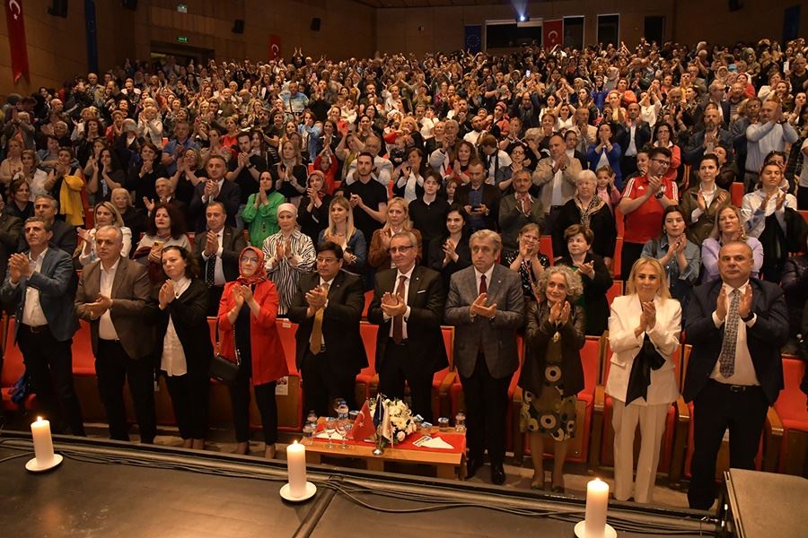 Konser sonunda sahneye çıkarak bir konuşma yapan Samsun TSO Yönetim Kurulu Başkanı Salih Zeki Murzioğlu, “Ülkemizi derinden sarsan deprem felaketinin etkilediği coğrafya tarihiyle, kültürüyle, tarımıyla, sanayisiyle çok önemli değer yaratan bir bölgemiz. Haberi aldığımız ilk andan itibaren, bizi biz yapan en kıymetli duyguya sığındık, dayanışma adına elimizden ne geliyorsa ortaya koyduk. Bu yıl maalesef acısı çok derinden hissedilen, çok sayıda canın kaybedildiği büyük deprem felaketi nedeniyle Avrupa Günü etkinliklerinde Avrupa ve Türkiye arasında ‘dayanışma’ kavramına vurgu yapılmaktadır. 6 Şubat’ ta yaşanan bu elim felaket sonrası Avrupa Birliği üyesi ülkeler, 1600'den fazla arama-kurtarma görevlisi ve 111 arama köpeğinden oluşan 32 arama kurtarma ekibi ile Türkiye'ye yardıma koştu. Altı sağlık ekibi ve beş sahra hastanesi binlerce insanı tedavi etti ve daha sonra bu ekipman ilgili şehirlere bağışlandı. Mart ayında düzenlenen Avrupa Birliği ve Uluslararası Toplum üyeleri Bağış Konferansı ile Türkiye'deki depremzedeleri desteklemek için 6 Milyar Avro’nun üzerinde yardım taahhüdünde bulunuldu. Dünyanın her yerinden olduğu gibi bizden maddi ve manevi desteklerini esirgemeyen Avrupa Birliği Türkiye Delegasyonuna da teşekkür ediyorum. Dayanışmanın gücüyle yaraları hep birlikte sarmaya devam ediyoruz. Acımız hala taze. Ben bir kez daha depremde hayatlarını kaybeden vatandaşlarımıza Allah’tan rahmet, yaralılara da acil şifalar diliyorum. Allah hepimizin yardımcısı olsun. Milletimize bir daha böyle büyük felaketler göstermesin. Avrupa Günü nedeni ile gerçekleştirdiğimiz bu anlamlı konserde kendileri de birer depremzede olan ve farklılıkların bir arada barış içinde yaşama fikrinin en güzel örneklerinden biri olan Antakya Medeniyetler Korosunu şehrimizde ağırlamaktan büyük mutluluk duyduk. Acılarını, kederlerini, türkülerini burada bizimle paylaştılar. İşte bizi biz yapan da dediğim gibi birlik ve dayanışma. Kendilerinin yaşadığı derin üzüntü ve acıları en içten şekilde paylaştığımızı belirtmek istiyorum. Bu akşam bize unutulmaz bir gece yaşatan Koro Şefimiz Yılmaz Özfırat başta olmak üzere koronun tüm üyelerine teşekkür ediyorum” dedi. Başkan Murzioğlu ardından ise, Koro Şefi Yılmaz Özfırat’a anı takdiminde bulundu.