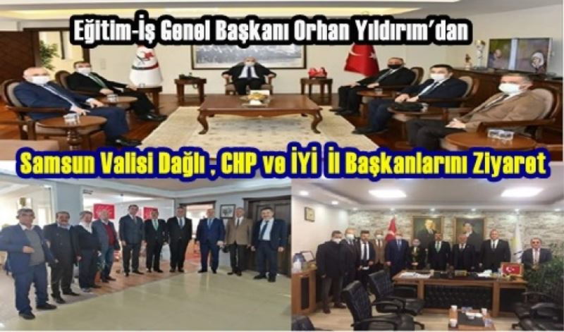 Eğitim İş Genel Başkanı Orhan YILDIRIM, beraberindeki ekiple birlikte önce Samsun CHP İL Başkanı Fatih Türkel’i ve İYİ Parti İl Başakanı Hasan Aksoy'u makamlarında ziyaret ettiklerini bildiren Eğitim-İş Genel Başkanı Orhan Yıldırım, başkanları ziyaretlerinde de 'Samsun'da ki eğitimin güncel sorunları ve çözümleri üzerine görüşlerimizi bildirdik' dedi.