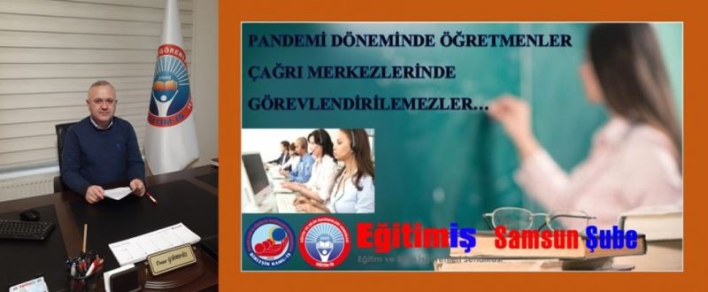 Eğitim-İş Samsun Şube Başkanı Gündüz açıklamasının sonunda şunları ifade etti. 'Öğretmenlerin görev tanımında yer almayan, uzmanlık alanı olmayan, yetkin olmadıkları, düşünülen bu görevlendirmeler kabul edilemez. Görevlendirilen 30 öğretmeni belirleyenler, hangi kriterlere göre bu 30 öğretmeni tespit etmişlerdir. Yapılan görevlendirme, öğretmenler arasında huzursuzluğa neden olmaktadır. Bir öğretmeni, pandemi döneminde öğrencilerinden kopartıp çağrı merkezine görevlendirmek, eğitim öğretime büyük zarar vermektedir. Çağrı merkezlerinin personel ihtiyacı varsa, bu işi yapacak çok sayıda eğitimli işsiz gencimiz bu alanda istihdam edilebilir. Öğretmenlerimizin pandemi döneminde zor şartlarda gerçekleştirdikleri görevleri var iken, yapılan bu görevlendirme eğitime ve öğretmene değer verilmediğini göstermektedir. Öğretmenler, asıl görevleri olan öğretmenlik mesleğini yapmalıdır. Öğretmenlik mesleği kutsal bir meslektir. Samsun İl Milli Eğitim Müdürlüğüne açık çağrımızdır: Eğitim iş olarak; öğretmenlerimizin bu şekilde bir görevlendirmeye tabi tutulmasının, özlük haklarına aykırı olduğunu ifade ediyor, Samsun Milli Eğitim Müdürlüğü yetkililerini uyarıyoruz. Bu görevlendirmelerden kaynaklanabilecek her türlü mağduriyetle alakalı, Eğitim Iş sendikasının aldığı eylem kararını uygulayacağımızı ve gereken hukuki mücadeleyi başlatacağımızı da şimdiden ifade ediyoruz' diye konuştu.