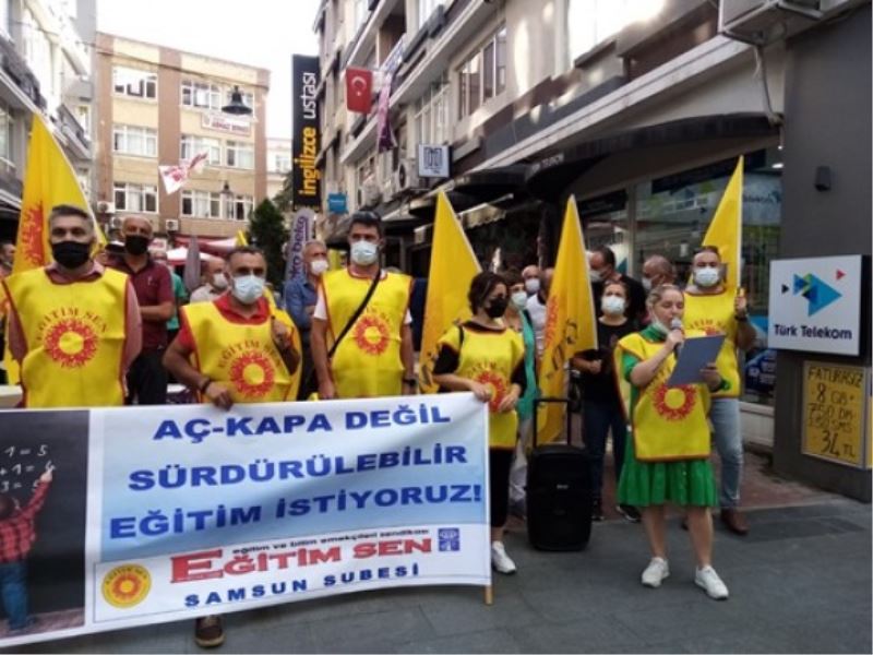 Eğitim-Sen Samsun Şube Başkanı Topaloğlu; “ Milli Eğitim Bakanı Mahmut Özer ‘Okullarda gerekli önlemleri aldık’ açıklamasını yapsa da Türkiye çapında okulların önemli bir bölümünün salgın koşullarına uygun hale getirilmediği, gerekli altyapı hazırlıklarının yapılmadığı bilinmektedir. Büyükşehirler başta olmak üzere, nüfus yoğunluğu fazla olan ilçe ve mahallelerde sınıfların salgın öncesine göre çok daha fazla kalabalık olması beklenmektedir. Derslik sayıları yetersiz olduğu için sınıf mevcutları artmakta, ek derslik ihtiyacı karşılanmadığı için derslik sorunu devam etmektedir. MEB ise okulların yüz yüze eğitime hazır olmasından “maske, mesafe ve hijyen” kurallarına uymayı anlamaktadır. Nitekim Milli Eğitim Bakanı Mahmut Özer yaptığı açıklamadaki “Servislerdeki ve okullardaki sağlık bilgisi tedbirleri, maske kullanımı, havalandırma gibi tüm ayrıntıları Sağlık Bakanlığı ile birlikte çalışarak alınması gereken önlemleri tüm valiliklere, tüm illerimize, tüm ilçelerimize bildirdik.” ifadesiyle bütün sorumluluğu mülki amirlere ve eğitim yöneticilerine bırakmıştır. Okullara gerekli ödeneğin gönderilmemesi nedeniyle eğitimin bütün yükü öğrenci velilerinin üzerine yıkılmaya başlanmış, kayıt parası başta olmak üzere, velilerden sıvı sabundan, deterjana kadar çeşitli adlar altında para toplanmaya başlanmıştır. Geçmiş yıllarda olduğu gibi, 2021/’22 eğitim öğretim yılı başında da okullarda temizliği sağlayacak personel eksikliği sorunu devam etmektedir. Uzun süredir İŞKUR personeli üzerinden sağlanan personel ihtiyacı sorununun çözülmesi için ayrılması gereken ödenekler ayrılmadığı gibi; okullarımızda sağlıklı bir ortamın düzenli bir şekilde oluşturulması için yardımcı personellerin görevlendirmeleri de hala yapılmamıştır. Yıllardır kadrolu yardımcı personel alımı yapılmamakta ve ihtiyaçlar İŞKUR üzerinden geçici görevlendirmelerle geçiştirilmektedir. Gerekli personel görevlendirmelerinin okullar açıldıktan çok sonra yapılması önemli bir sorun olmayı sürdürmektedir. Temizlik görevlisi yardımcı personel olmayınca, birçok okulumuzda velilerimiz ekonomik yük altına girmek zorunda kalmaktadır” şeklinde açıklamalarda bulundu.