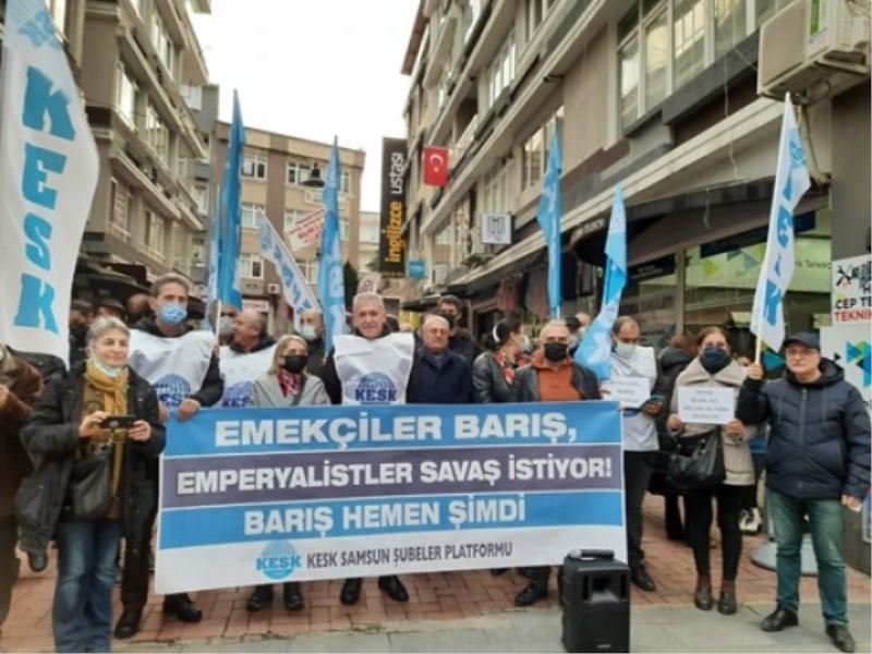 KESK Samsun dönem sözcüsü Suat Yıldız Süleymaniye caddesinde yaptığı açıklamasının sonunda şunları kaydetti. “Savaşı durdurmak için geç değildir. Yüzyıllardır dünyada denenmeyen tek şey barış olmuştur. Ukrayna’da ve bölgede kan dökülmesi önlenmelidir. Emperyalist politikalar üzerinden, Rusya Ukrayna saldırılarını durdurmalı, yine emperyalist politikaları üzerinden ABD/NATO silahlanmayı, yayılmayı, Rusya’yı ve Çin’i kuşatmayı esas alan politikalarından vazgeçmelidir. Askeri paktlar dağıtılmalı, başka ülkelerdeki askeri varlıklar sonlandırılmalıdır. Bu kapsamda Ukrayna’daki tüm yabancı güçler geri çekilmelidir. Ülkemizde ve dünyada savaşa, silahlanmaya ayrılan kaynaklar kamusal hizmetlere, insan onuruna yaraşır bir yaşam için kullanılmalıdır. Savaş çığırtkanlarına, savaştan nemalanmak, kendi baskı politikalarına yeni bir gerekçe yaratmak isteyenlere taviz verilmemelidir. Emek ve demokrasi güçleri, savaş isteyen emperyalistler ve emperyalist politikalara karşı barış mücadelesini yükseltmeli, barış için inisiyatif oluşturmalıdır. Konfederasyonumuz bu konuda üzerine düşen her türlü sorumluluğun gereğini yapacaktır. Bir kez daha altını çizerek belirtiyoruz; Savaşa derhal son verilmeli, gecikmesizin diyalog ve müzakere süreci başlatılmalıdır” dedi.