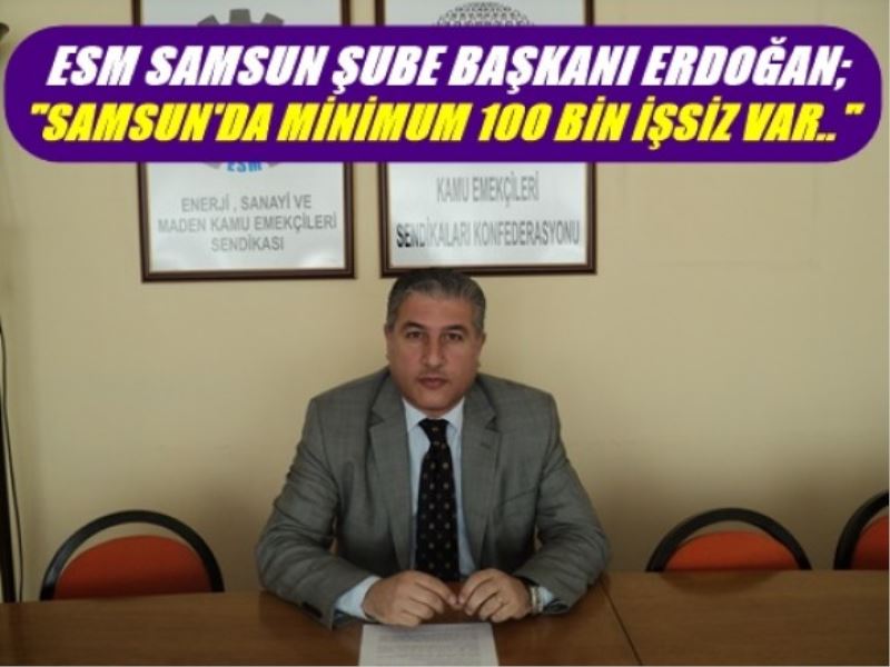 KESK’in iş kollarından ESM Şube Başkanı Müşfik Veysel Erdoğan, Samsun'da işsiz sayısının minimum 100 bin kişi civarında olduğunu belirterek, 'Bu sayının Samsun’un geleceği için oldukça endişe verici bir durumla karşı karşıya