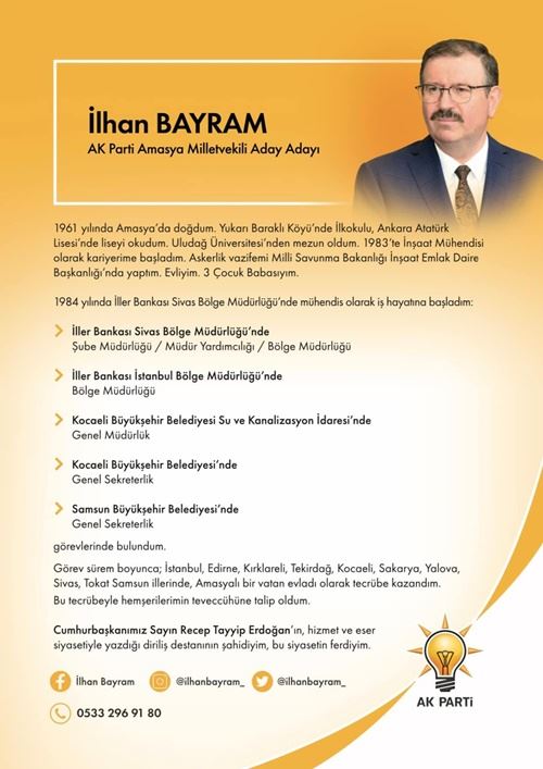 İlhan Bayram’ın istifa etmeden AKP amblemli paylaşımı ile Samsun Büyükşehir Belediyesi’ndeki görevini sürdürürken AKP Amasya Milletvekili Aday Adayı olduğunu açıklaması dikkat çekti.