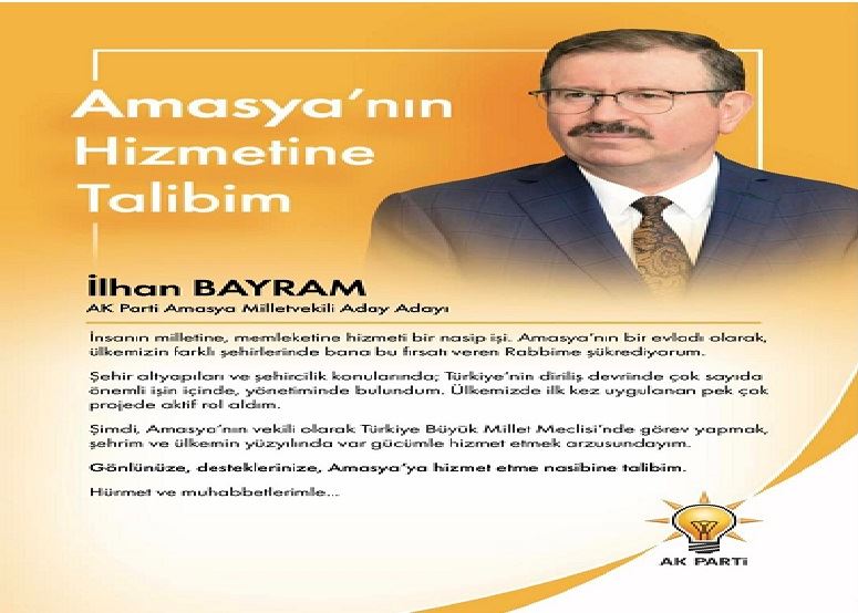 İlhan Bayram aday adayı olduğunu da çarşamba günü AKP Amasya İl Başkanlığı binasında açıklayacak.