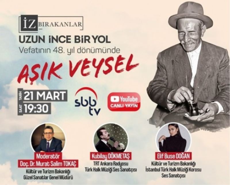 Samsun Büyükşehir Belediyesi Kültür ve Sosyal İşler Daire Başkanlığı da vefatının 48. yılında ‘Aşık Veysel’i anacak. 21 Mart günü 19.30’da başlayacak ‘İz Bırakanlar’ programı, SBB TV’nin YouTube kanalında canlı yayınlanacak. Moderatörlüğünü Doç. Dr. Murat Salim Tokaç’ın yapacağı anma programında ünlü ozanın türkülerini TRT Genel Müdürlüğü Sanat Danışmanı, Müzik Dairesi Başkanı ve Ankara Radyosu Türk Halk Müziği ses sanatçısı Kubilay Dökmetaş ile Kültür ve Turizm Bakanlığı İstanbul Devlet Türk Halk Müziği Korusu ses sanatçısı Elif Buse Doğan seslendirecek.