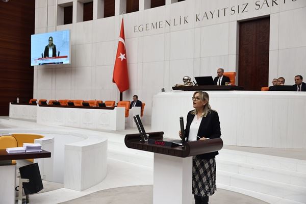 Büyük deprem felaketini yaşayan ve bugün hayata yeniden tutunma mücadelesi veren kadınların tek derdi barınma, beslenme, sağlık, hijyen koşullarına erişim değil; bütün bu sorunların yanı sıra çocuklarının eğitim hakkından yoksun bırakılması ve onlar için gelecek endişesi yaşamaları bu kadınları derinden sarsıyor. Hadi, depremi "kader" diye geçiştiriyorsunuz; peki, çocukları eğitimden koparmak, bu haktan yoksun bırakmak kader mi? Hayır, bu, kader falan değil, iktidarın basiretsizliğidir. Depremde ve sonrasında yaşananları unutmayacağız, unutturmayacağız. Emin olun, deprem bölgesinde yaşayan kadınlar da kendilerine yaşatılanları unutmayacak ve sözümüz söz, böylesi yıkımların, böylesi acıların bir daha yaşanmaması için liyakatli, hakkaniyetli ve insanına, kadınlarına değer veren yepyeni bir anlayışı bu ülkede egemen kılacağız.”