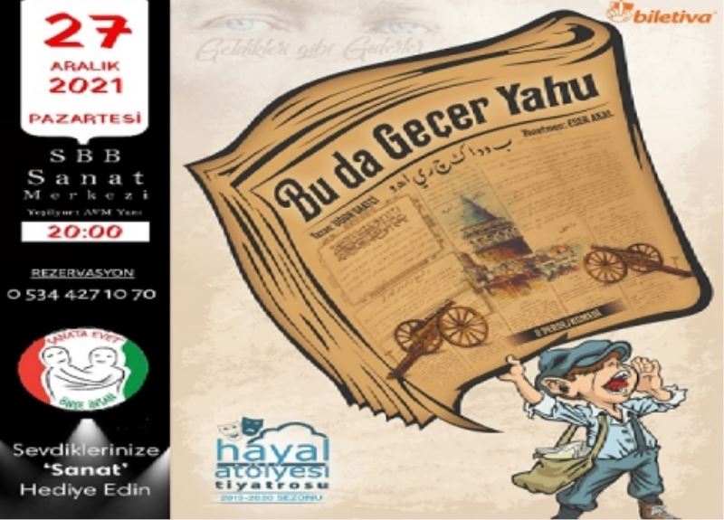 Samsun'un yerel tiyatrolarından Hayal Atölyesi Tiyatrosu seyircisi karşısına BU DA GEÇER YAHU oyunuyla Samsun Atakum Sanat merkezinde 27 Aralık 2021 Pazartesi günü saat 20.00'de 2 perde müzikal komedi olarak sahnelenecek.