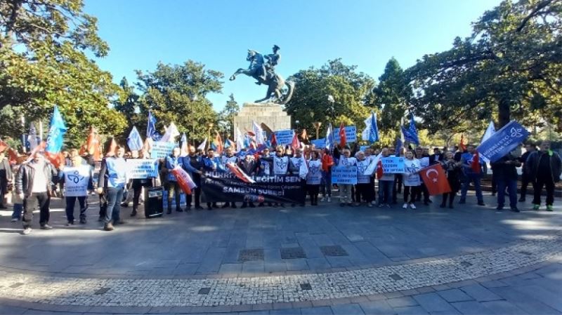 Hürriyetçi Eğitim-Sen genel başkanı Levent Kuruoğlu, Samsun Onur Anıtı önünde ÖMK ile ilgili olarak sendika üyeleriyle birlikte yaptığı basın açıklamasında şunları ifade etti.