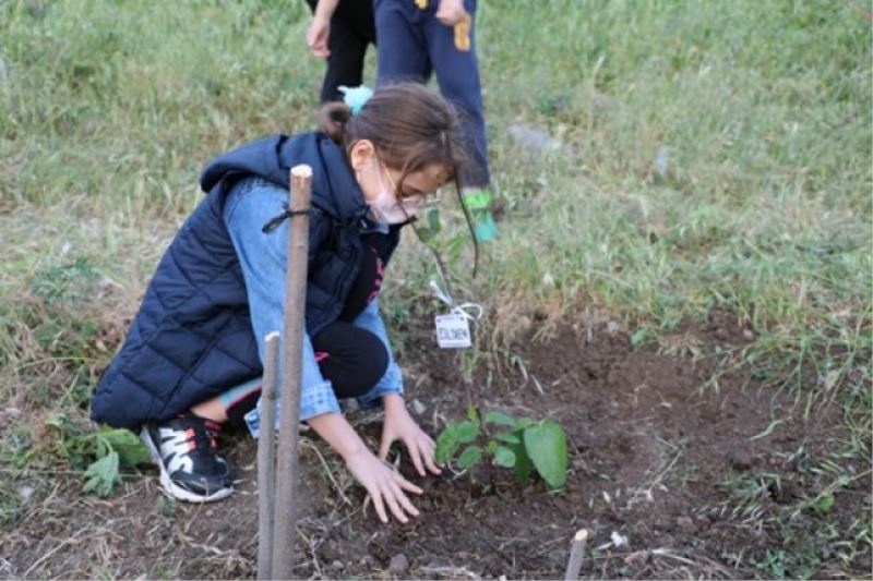 SAMSUN- İlkadım ilçesi Karasamsun Mahallesi’nde bulunan Fatma Hatun Sitesi'nde oturan vatandaşlar, temin ettikleri 42 fidanı kendi elleriyle diktiler. Sitenin çevresine bulunan dik yamaca 42 adet ağaç fidanı diken site sakinleri, diktikleri fidanlara çocuklarının isimlerini verdiler. Çocuklar bir yandan toprak ile oyun oynarken diğer taraftan fidan dikimi yaptı. Renkli görüntülerin ortaya çıktığı fidan dikiminde çocuklar, keyifli zaman geçirdi. Dikim etkinliğine katılım sağlayan İlkadım Belediyesi Başkan Yardımcısı Lütfü Coşkun ve Karasamsun Mahalle Muhtarı Hüseyin Yıldırım kendi elleriyle kazdığı toprağa adlarının yazılı olduğu fidanların dikimini gerçekleştirdiler.