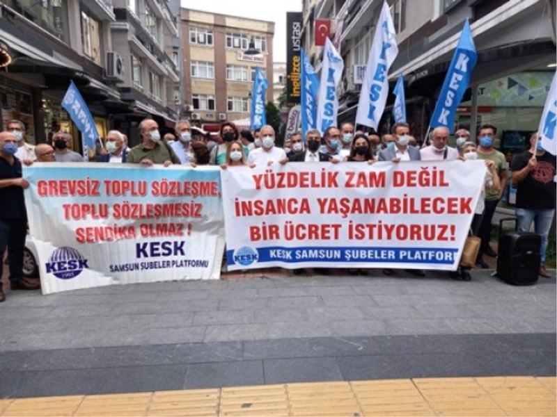 KESK MYK üyeleriyle birlikte KESK Samsun şubeleri bir araya geleeksürmekte olan Toplu İş Sözleşmesiyle ilgili basın açıklamasında bulunuldu.