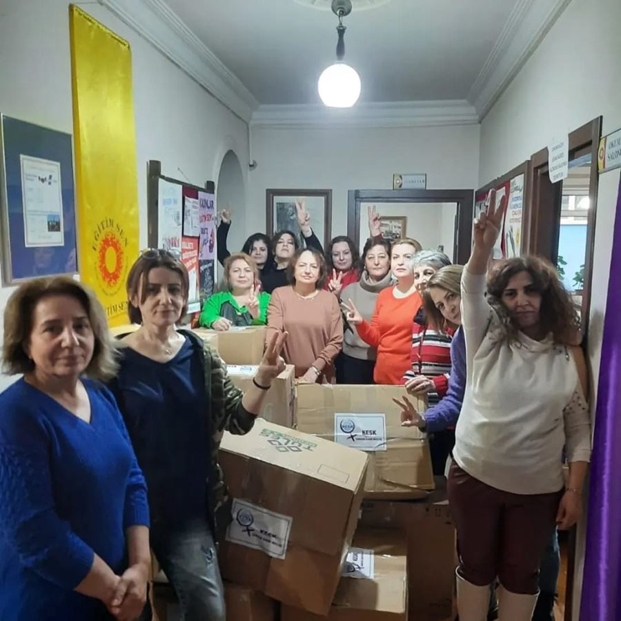 KESK Samsun Dönem Yürütmesi adına BES Samsun şubesi Kadın Sekreteri Emine Boyraz; “8 Mart’a yaklaşırken, depremden etkilenen kadınların ihtiyaçlarını rahatça ifade edemediklerini de gözeterek, deprem bölgelerinde KESK Kadın Koordinasyon Çadırları üzerinden çok yönlü bir çalışmayı örgütlüyoruz. Hatay, İskenderun, Adıyaman, Pazarcık/Narlı, İslahiye, Malatya’da kadından kadına dayanışmayı örüyoruz. Bu amaçla biz de Samsun KESK Kadın Meclisi olarak dayanışma için topladığımız kitleri bölgeye gönderiyoruz. Öfkemizle, isyanımızla kadın dayanışmasını örüyor, yaşamı yeniden kuruyoruz. Bu 8 Mart'ta da tüm kadınlarımızı birlikte dayanışmaya çağırıyoruz. Biz birlikte güçlüyüz. Yaşamı yeniden kuracak gücü birlikte bulacağız. Soracak hesabımız, yeniyi kuracak gücümüz var” dedi.