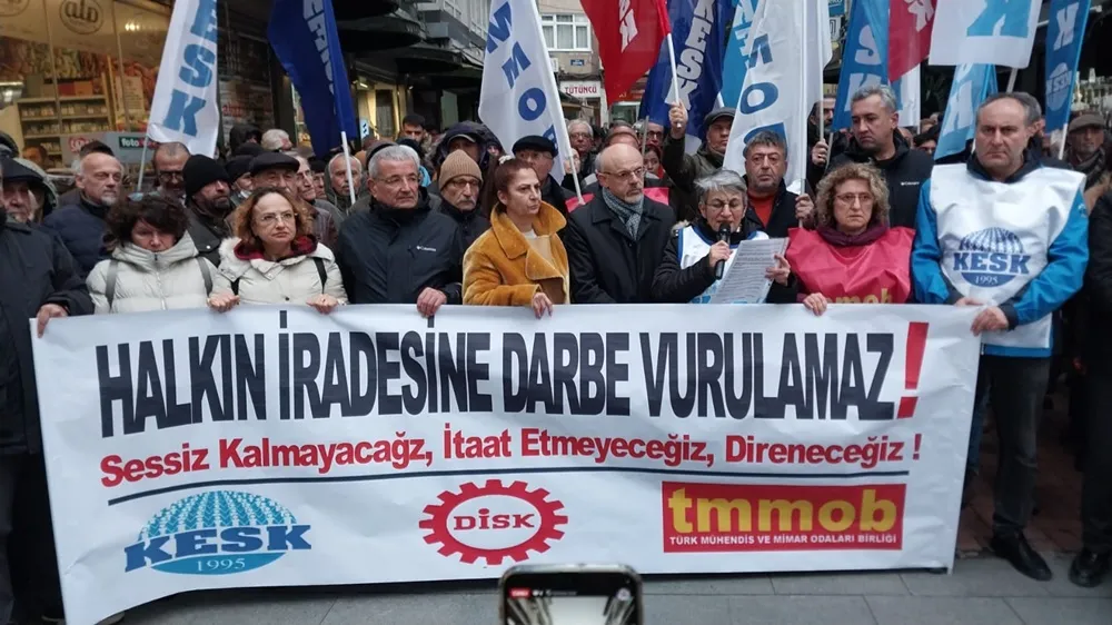 KESK, DİSK ve TMMOB adına konuşan KESK dönem sözcüsü Albak’ın basın açıklamasının sonunda CHP Samsun il başkanı Mehmet Özdağ, İBB başkanı cumhurbaşkanı aday adayı Ekrem İmamoğlu’nun gözaltında bulunduğu yerden avukatı aracılığıyla kendi el yazısıyla yazdığı mesajını okudu;