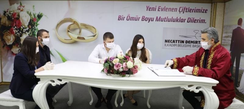 İlkadım Belediyesi tarafından nikahlar korona virüs tedbirleri alınarak kıyılıyor.