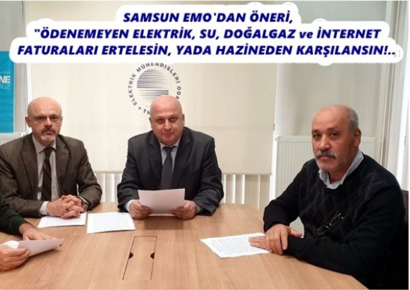 Tüm dünyayı etkisi altına alan COVİD-19 Pandemisi nedeniyle Samsun Elektrik Mühendisleri Odası (SAMSUN EMO) Elektrik, Su, Doğalgaz ve İnternet faturaları var olan krizden ötürü kesilmek yerine kriz sona erene kadar ertelenmesi yönünde bir