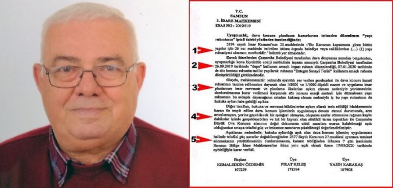3-Ruhsat yenilenmesi yapılarak gerçek niyetlerini ortaya çıkararak inşaat ruhsatı 'DEPO'dan' 'ENERJİ SANTRALİNE' çevirdiler. Firma ile Çarşamba Belediyesi yasaya karşı hile yolunu tercih ederek hülle yaptılar. Ama yaptıkları işlemler 'İMAR MEVZUATINA , PLANLAMA İLKELERİNE AYKIRIYDI.MAHKEME TESPİT EDEREK İMAR PLANLARINI İPTAL ETTİ.'' ENTEGRE SANAYİ TESİSİ'' plan kararları iptal edilince, bu imar planlarına göre verilen inşaat ruhsatları dayanaksız kaldığından, verilen inşaat ruhsatlarının hukuki mesnedi kalmamıştır. Bu durumun halkın anlayacağı şekli verilmiş olan inşaat ruhsatlarının ipta edildiği manasınadır. Şimdi hemen Çarşamba Beleidyesi yazı yazarak inşaat inşaat ruhsatının iptal edildiğini firmaya bildirmek ve inşaatı mühürleyip durdurmak zorundadır. Artık HİLE ve HÜLLE yoluna TEVESSÜL ETMEMELİDİR.