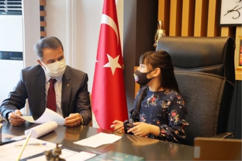 Adnan Kahveci İlkokulu 2-G sınıfı öğrencisi 8 yaşındaki Atakumlu Almila Elif Yüksel, sosyal medyadan bir süre önce Atakum Belediye Başkanı Av. Cemil Deveci’ye görüşme çağrısı yaptı. Başkan Deveci de 23 Nisan Ulusal Egemenlik ve Çocuk Bayramı’nda Almila Elif’i makamına davet ederek çağrıya kayıtsız kalmadı. Sosyal mesafe kuralları gözetilerek gerçekleşen ziyarette Başkan Deveci’nin makam koltuğuna oturan minik Almila Elif, makamda hem 23 Nisan şiirini okudu hem de yaban hayvanlarıyla ilgili önerisini sundu. Almila Elif’in önerisi ise Başkan Deveci’yi harekete geçirdi.