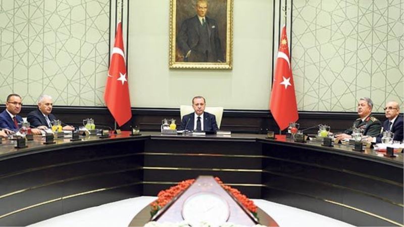 Cumhurbaşkanı Recep Tayyip Erdoğan’ın çağrısı üzerine Cumhurbaşkanlığı Külliyesi’nde 1 saat 40 dakika süren toplantının ardından yayınlanan bildiride İdlib’deki harekâtın başarıyla sürdüğü belirtildi. Bildiride Türk Hava Sahası’nın IKBY’ne yapılan uçuşlara kapatılması ve İbrahim Halil Sınır Kapısı’nın (Habur’un karşısı)Merkezî Irak Yönetimi’nce devralınması sürecinin başlatılması” hükümete tavsiye edildi. Tohlantıdan ayrıca OHAL’in 3 ay süreyle uzatılması için tavsiye kararı da çıktı. l AYDIN HASAN Ankara