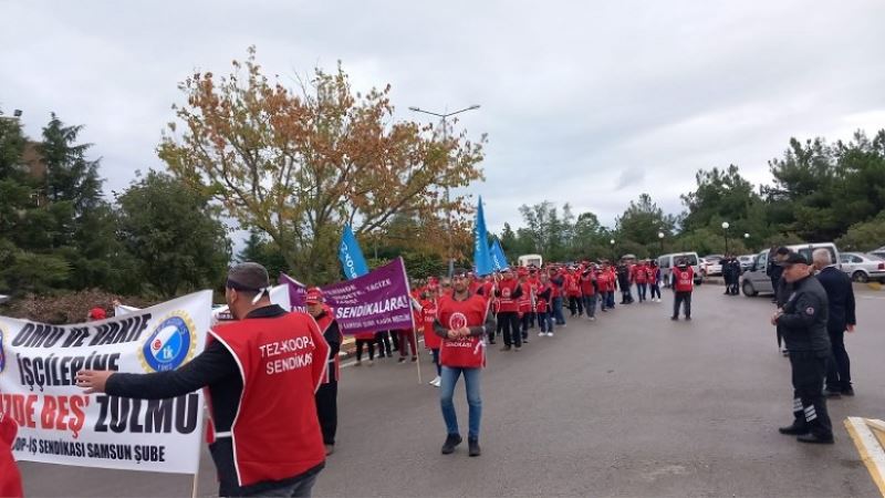 Tez-Koop-İŞ Samsun şubesi üyeleri OMÜ ve OMKAN işçileri yine OMÜ Rektörlüğüne kadar yürüdüler. Yürüyüş sonunda OMÜ rektörlüğü önüne gelen işçiler basın açıklaması yaptılar. Basın açıklamasını Tez-Koop-İş Samsun Şube İdari Sekreteri Buket Özden yaptı. Buket Özden’in açıklamasının öne çıkan başlıkları şöyle