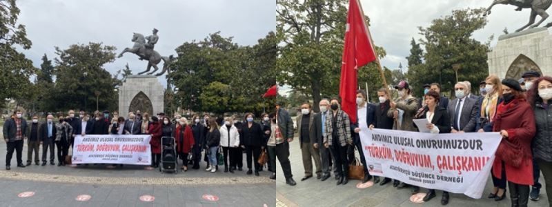 Kurucu liderinin Gazi Mustafa Kemal ATATÜRK olduğu Türkiye Cumhuriyetinde bu akılsız, bu vicdansız, bu vefasız kararları anlamamız mümkün değildir. Bu ülkenin her yurttaşının Mustafa Kemal Atatürk’e, Devrimlere ve Milli Mücadelenin kahramanlarına borcu vardır. Bu topraklar üzerinde Emperyalizme karşı etnik kimliği gözetmeden kürdü, Türkü, Çerkezi, Lazı büyük bir kurtuluş mücadelesi vermiş ve dünyada ilk defa emperyalizmi dize getirmiştir. Bu destansı Ulusal Kurtuluş Mücadelesi, Türkiye Cumhuriyeti kurularak taçlanmıştır. Bugün Ülkemizde etnik ve mezhepsel çatışma bizi bölmek isteyen emperyalizmin bir oyunudur. Yıllardan beri “Türk Milleti” ifadesinin, bir üst kimlik olduğunu ısrarla anlamak istemeyenlerin niyeti ortadadır. Andımızla ilgili ne yapıp ne edip bu siyasi kararı alanlar, Mustafa Kemal Atatürk’ün “ Türkiye Cumhuriyeti’ni kuran Türkiye halkına Türk Milleti denir.” sözünü ve Anayasamızda yer alan “ Türk devletine vatandaşlık bağı ile bağlı olan herkes Türk’tür.” Maddesini yok saymışlardır. Türk milleti, “çözüm süreci” diye parlatılan “yıkım süreci” doğrultusunda Andımızın kaldırılmasının kimler tarafından talep edildiğini unutmamıştır. Atatürk’e ve Cumhuriyete yıllardır yapılan talimatlı saldırılar, Atatürk isminin bu coğrafyada ifade ettiği Ulusal Üniter yapıya saldırıdır” dedi.