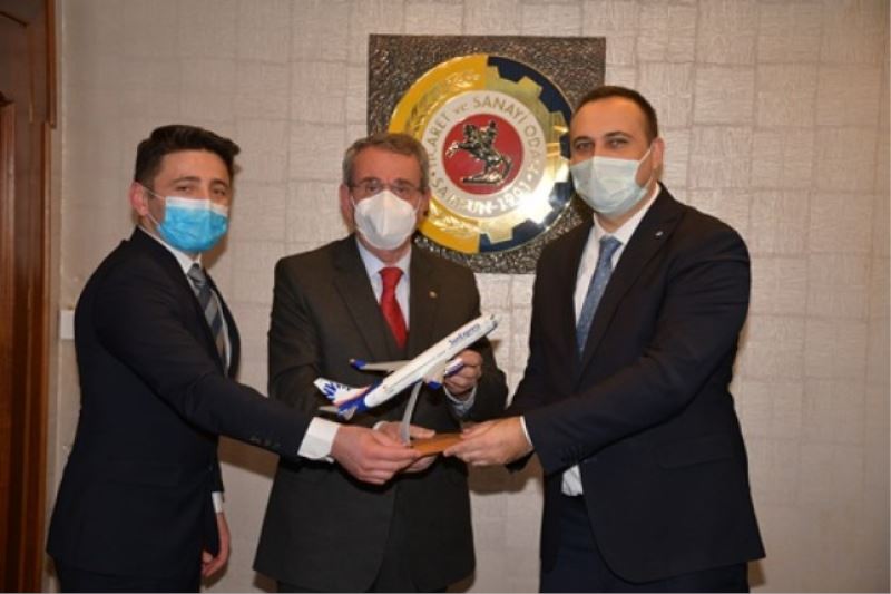 Samsun TSO Yönetim Kurulu Başkanı Salih Zeki Murzioğlu, SunExpress Anadolu Bölge Satış Müdürü Altuğ Özpekin ve Anadolu Bölge Satış Sorumlusu Murat Katran’ı makamında kabul etti. Murzioğlu, 2021 yaz sezonunda Samsun’a 2 iç hat, 4 dı