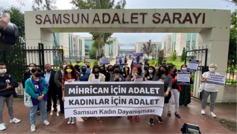 SAMSUN- Samsun Kadın Dayanışması, Samsun Adalet Sarayı önünde dün görülen duruşma öncesinde “MİHRİCAN İÇİN ADALET, KADINLAR İÇİN ADALET” yazılı bir pankartı açarak basın açıklamasında bulundular.