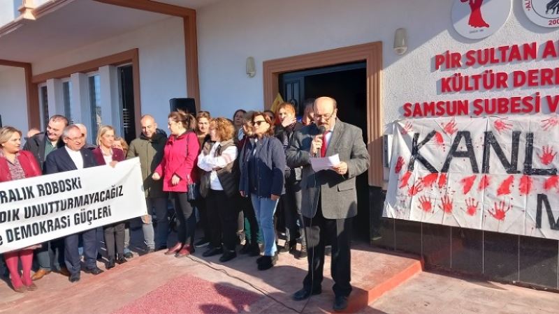 Samsun PSAKD (Pir Sultan Abdal Kültür Derneği) şubesi bugün dernek binası ve Cemevi önünde CHP Samsun Milletvekilleri, siyasi partiler, dernekleri ve sendikaların katılımıyla 44 yıl önce yaşanan Maraş Katliamı için dernek başkanı Cem S