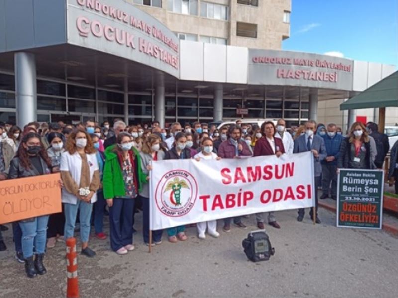 Önceki gün nöbet sonrası evine giderken yaşamını yitiren Ankara Şehir Hastanesi Kadın Doğum Kliniği Asistanı Dr. Rümeysa Berin Şen’in ölümüyle ilgili olarak Samsun Ondokuz Mayıs Üniversitesi Tıp Fakültesi önünde bir basın açıkl
