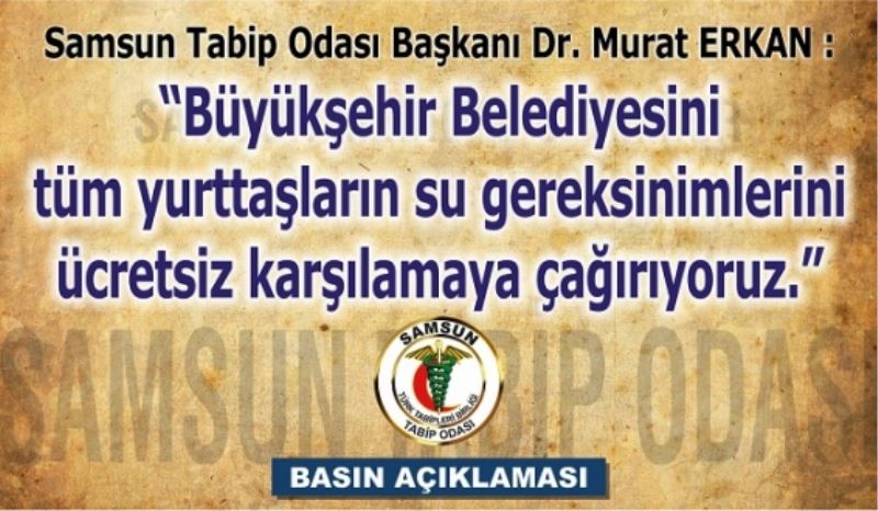 SAMSUN TABİP ODASI; BÜYÜKŞEHİR BELEDİYESİ YURTTAŞLARIMIZA GÜNDE 150 LİTRE SU ÜCRETSİZ VERMELİDİR…