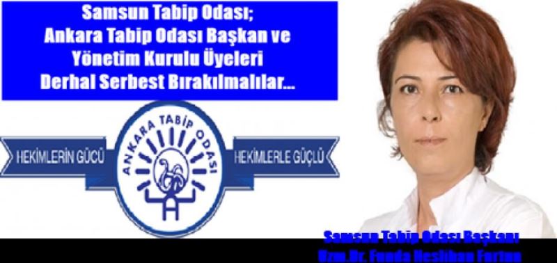Samsun Tabip Odası adına başkan Uzm. Dr. Funda Neslihan Furtun, bu sabah itibarıyla “Ankara Tabip Odası Başkanımız Dr. Ali Karakoç, yönetim kurulu üyesi Dr. Ayşe Uğurlu’nun içinde bulunduğu sağlık emekçilerini temsil eden grubun s